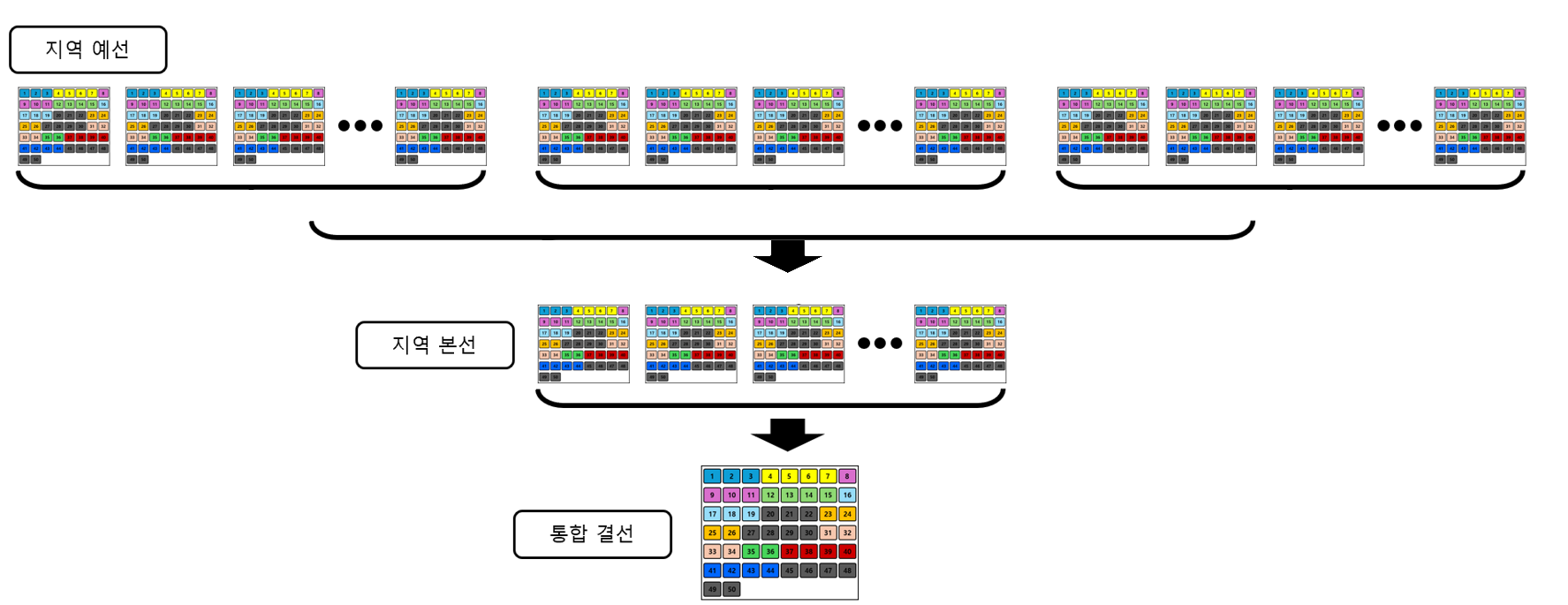 통합 결선은 각 지역 본선 통과자 중 최종 50명(또는 적정 인원)을 선발해 Knock Out 방식으로 경쟁하며, 라운드마다 기준을 충족해야 다음 단계로 진출하고 최종 1인(또는 상위 소수)을 선정합니다.